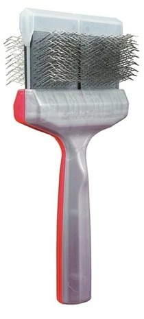 De Activet Mega Undercoater Duo Zapper / Grabber is een professionele hondenborstel voor de langharige hond, die klitten en de ondervacht aanpakt. Ideaal voor grote, langharige honden zoals herders! Deze borstel bestaat uit twee delen, een rode en zilveren kant. De rode kant, de Zapper, is perfect om de vacht mee te ontklikken. Met de zilveren kant, de Grabber, verwijder je de losse onderwol uit de vacht. Uniek in zijn soort en daarom al jarenlang zeer populair bij de professionele hondentrimmer! Let op: deze borstels waren voorheen te koop onder de naam Les Pooch.