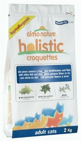 Almo Nature Cat Droog Vis/Rijst is volledige diervoeding voor katten.