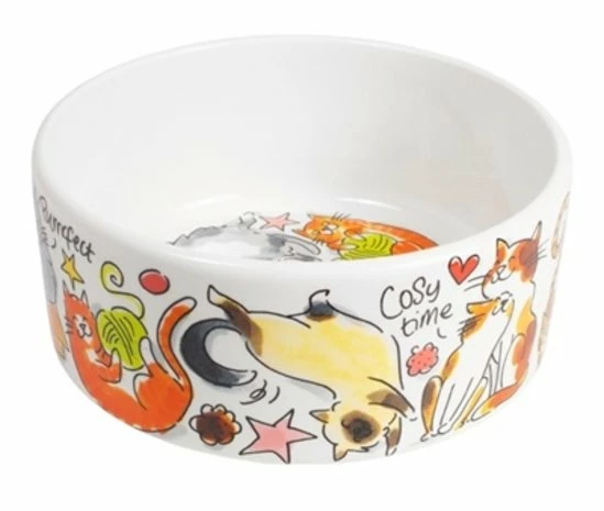 De Blond Voerbak Cat Love 15,5 cm is een voerbak van aardewerk van het bekende Blond Amsterdam, met de opdruk van verschillende katten. Geschikt voor de vaatwasser en de magnetron! Deze voerbak is daarmee geschikt voor droogvoer, natvoer en water. De bak heeft een leuk design met een print van verschillende katten in de typische Blond-stijl en de opdruk ‘Cat Love’. De voerbak heeft een diameter van 15,5 centimeter en is 7 cm hoog.