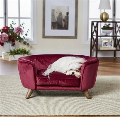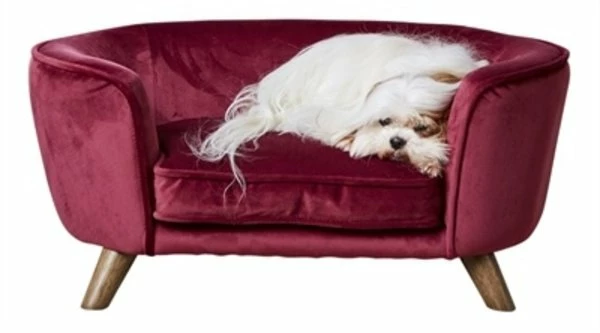 De Enchanted Hondenmand / Sofa Coco Wijnrood van 67,5 x 40,5 x 30,5 cm cm is een sjieke hondenbank voor jouw hond of kat, met ronde rugleuning en zachte bekleding.
