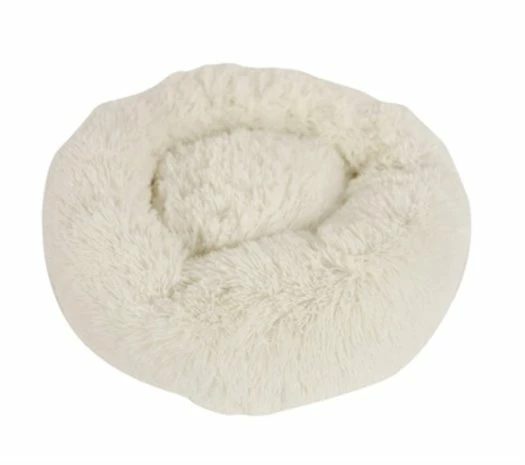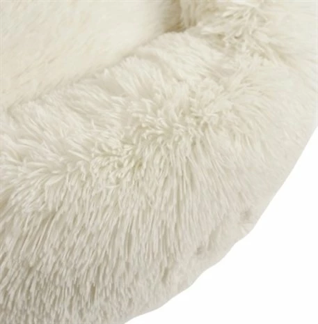 De Foeiii Zenji Relax Donut Wit 50 cm is een heerlijk comfortabele hondenmand, rond van vorm met dikke rand, van zacht langharig pluche en met anti-slip onderkant.