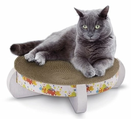 Een leuke kartonnen ronde krabplank speciaal ontworpen voor jouw kat! De nagels blijven met deze plank goed in conditie en het interieur wordt bespaard. De plank heeft een onweerstaanbare aantrekkingskracht door de toevoeging van catnip. Door deze kattenkruid blijft jouw kat de krabplank opzoeken. Tevens kan de lounge gebruikt worden als heerlijke lig plek. Mocht de bovenkant van de plank op zijn door het vele krabben, draai hem dan om voor nog meer krabplezier!