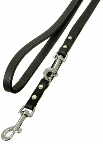 Mooie stijlvolle trainingslijn met metaal beslag. De lijn is gemaakt van zwart leder, heeft een breedte van 18 mm en is 2,4 meter lang.