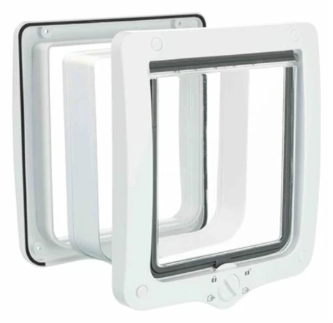 Het Trixie 4-Weg Kattenluik XL Inclusief Tunnelstuk van 24 x 28 cm is een kunststof kattenluik speciaal voor grotere katten met transparante klep. Het luik heeft vier richtingen, namelijk alleen naar binnen, alleen naar buiten, allebei of geen van beiden. Door middel van de gemakkelijke draaisluiting kun je het luik openen en sluiten in de door jou gewenste richting. Het luik is uitgerust met een geluidsarme transparante klep en een TPR afdichtingsring. De klep sluit door middel van een magneetsluiting. Met drie jaar garantie!