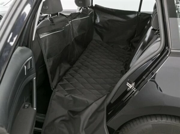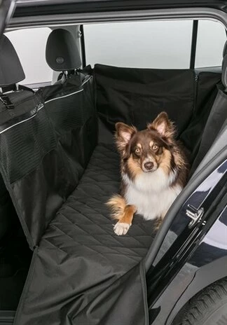 De Trixie Autobeschermdeken Zwart van 155 x 130 cm is een beschermdeken voor de hond, geschikt voor de achterbank van de auto, met anti-slip onderkant en hoge zijkanten. De ultieme bescherming voor jouw auto! Als jouw hond op de achterband meereist in de auto, wil je deze natuurlijk beschermen tegen haren, zand, vocht en vuil. Deze handige autobeschermdeken van Trixie is daar speciaal voor ontworpen. Deze deken is gemaakt van polyester, met een anti-slip onderzijde die ervoor zorgt dat het deken stevig op zijn plek blijft in de auto. Ook zijn er lussen gemaakt voor om de hoofdsteunen van zowel de voor- en achterstoelen voor meer stabiliteit; bovendien zorgen de hoge zijkanten voor extra bescherming van de deurbekleding. De zijkanten kunnen opengeritst worden en naar beneden geklapt om het in- en uitstappen te vergemakkelijken. Er zijn uitsparingen in het deken aangebracht om de veiligheidsriem van de hond vast te maken en je kunt het deken in tweeën splitsen, zodat er nog iemand op de achterbank kan zitten. Het deken is waterdicht en beschermt jouw bekleding zo ook op regenachtige dagen!