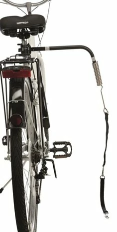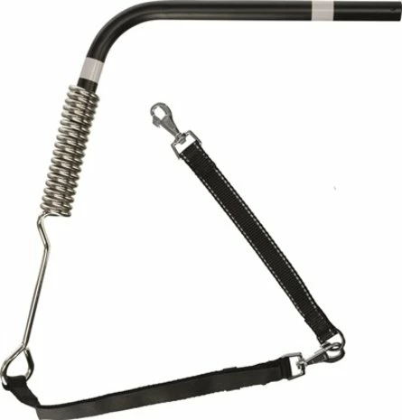 Ga er veilig op uit met fiets en hond! Met deze set lijn je jouw hond aan jouw fiets aan zodat jij je handen vrij hebt om te sturen. Door de geïntegreerde veer in de set worden plotselinge rukken en schokken geabsorbeerd en heb jij daar geen last van. Bij een erg harde ruk schiet de riem los van de fiets (de riem zit vast met stevig klittenband), dit zorgt voor extra veiligheid.