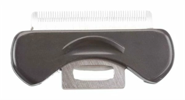 Heeft jouw hond een erg dikke vacht, last van vervilting of veel losse haren in de ondervacht die in de vacht blijven steken? Dan is deze Trixie Carding vachtkam ideaal. Deze handige hondenkam verwijdert moeiteloos overtollig haar uit de onderwol. Ook is hij bijzonder geschikt voor het eenvoudig ontvilten en uitdunnen van de vacht. Je kunt de opzetstukken makkelijk wisselen door middel van het klikmechanisme aan het handvat, dat is uitgevoerd met een slipvaste rubberen coating. Zo is het comfortabel kammen voor zowel jou en je hond, of je paard, want ook daarvoor is deze kam geschikt!
