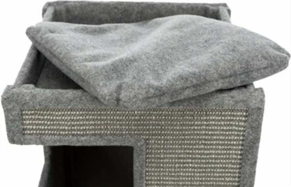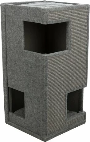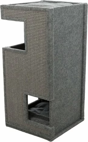 De Trixie Cat Tower Krabpaal Gabriel Grijs 78 cm is een krabton voor de kat met schuilplaats en bekleed met sisal en vilt, voorzien van twee sisal krabvlakken en kussens. Biedt jouw kat een eigen plek met deze Gabriel krabpaal van Trixie. Deze modern gevormde rechthoekige krabton met vierkante openingen is strak van design en een veilige plek voor jouw kat. Naast op de krabton kan de kat ook in de met fleece bekleedde schuilplaats liggen. De toren is voorzien van twee wendbare kussens. Natuurlijk geen krabpaal zonder krabben, dus is krabpaal Gabriel voorzien van twee zijden met grote sisal krabvlakken waar jouw kat naar hartenlust aan kan krabben. De kussens zijn wasbaar in in de handwas.
