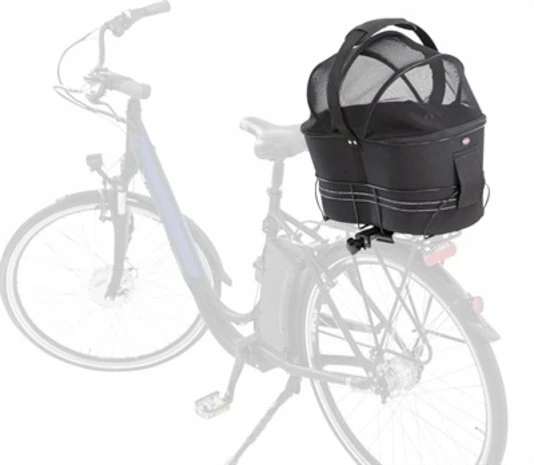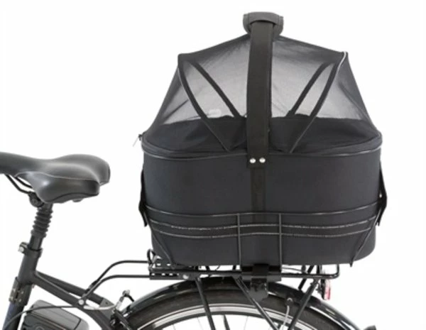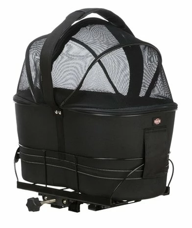 – Met stevig metalen frame voor op de bagagedrager (breedte 12-17 centimeter), bevestiging door middel van klittenband