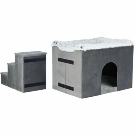 De Trixie Hondenmand Huis Harvey Met Trap Grijs / Wit 119 x 50 x 47 cm is een multifunctionele hondenhok/schuilhuis en ligmand in 1. Het huisje heeft een zacht, wendbaar kussen met schuimrubber vulling, welke geschikt is om op 40 graden te wassen in de wasmachine. Op het huisje ligt een bekleed ligplateau met afneembare pluche relaxmand van 70 x 50 cm en is bereikbaar met de plaatsbare traptreden. Deze schuilplaats is geschikt voor honden en katten en kan een belasting tot 15 kilo dragen.