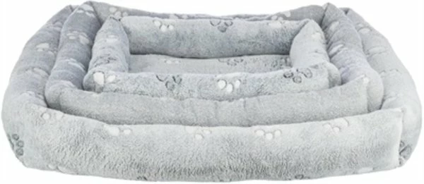 De Trixie Hondenmand Nando Hoekig Lichtgrijs van 90 x 75 cm is een comfortabele mand voor de hond, van heerlijk zacht fleece met een leuke print en slipvaste onderkant. Deze leuke mand is een aanwinst voor zowel hond als baas! Deze mand is gemaakt van heerlijk zacht pluche dat is uitgevoerd met een leuke print van pootafdrukken. De mand heeft een ligoppervlak met schuimrubber vulling voor meer comfort en een rand met polyestervlies vulling om de kop op te laten rusten of tegenaan te leunen. Door de slipvaste onderkant verschuift de mand niet bij het in- en uitstappen.