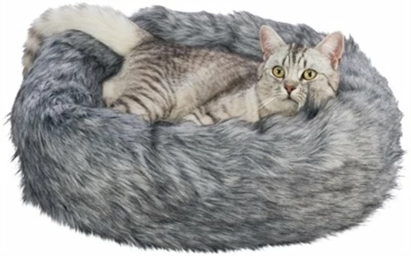 De Trixie Hondenmand Yelina Zwart / Grijs 55 cm is een warme slaapmand voor honden of katten met een zachte pluche afneembare hoes en slipvaste onderkant. De hoes kan op 40 graden in de wasmachine gewassen worden, het kussen zelf is alleen geschikt voor de handwas.