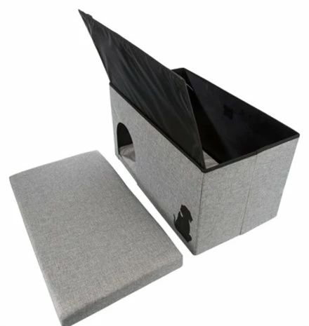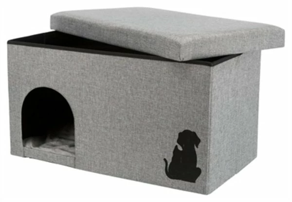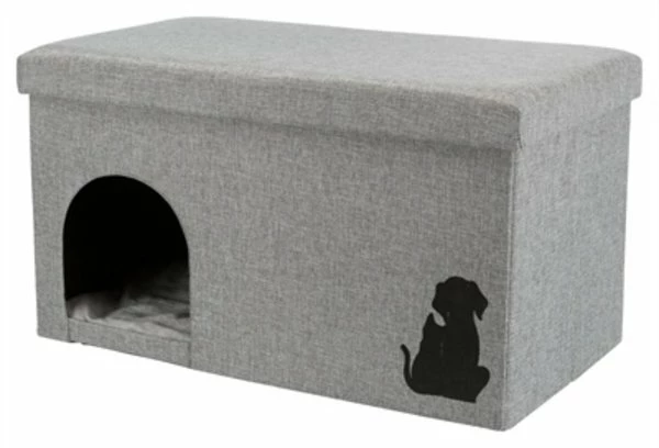 Het Trixie Kattenhuis Kimy Lichtgrijs van 72 x 40 x 40 cm is een leuk relax-huis voor binnen, met kussen en opbergvak. Het ideale eigen plekje voor jouw kat of kleine hond! Deze leuke Relax-Iglo is een rechthoekig huisje met aan één kant een ingang. Het huisje is gemaakt van geweven stof met een leuke afbeelding van het silhouet van een hond aan de zijkant. Het dak van de Iglo is afneembaar: hieronder vind je een opbergvak, waarin je bijvoorbeeld de favoriete speeltjes van jouw dier kunt opbergen. Ook kun je ervoor kiezen om het vak, dat vastzit met klittenband, eruit te halen om zo van bovenaf extra toegang te hebben tot de kat of hond. Het huisje komt met een heerlijk comfortabel, wendbaar kussen met pluche bekleding. Je kunt het kussen wassen in de wasmachine op 40 graden Celcius.