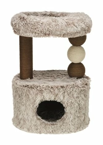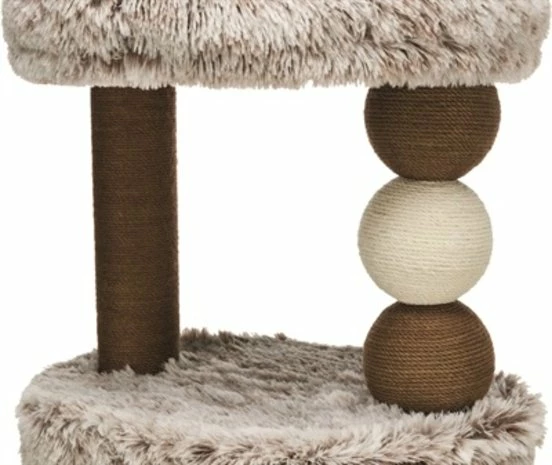 De Trixie Krabpaal Harvey Bruin 54 x 40 x 73 cm is een compacte krabpaal en ligplek voor de kat, van jute en langharig pluche met een schuilplaats en ligmand. Geef jouw kat een eigen plekje met deze compacte krabpaal van Trixie. Deze krabpaal neemt door zijn handige design weinig ruimte in, maar biedt jouw kat toch meerdere ligplekken. De paal is uitgerust met een mandje met gevoerde rand helemaal bovenop voor volledig overzicht over de ruimte en een veilige schuilplaats met fleece en wendbaar kussen. Tussen de twee schuilplaatsen zijn twee krabpalen geplaatst, een pilaar en drie op elkaar gestapelde ballen, allen bekleed met jute om optimaal aan de krabbehoefte van de kat te voldoen.