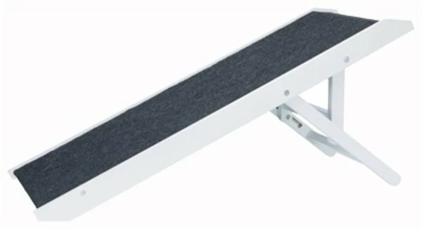 De Trixie Loopplank In Hoogte Verstelbaar Wit van 36 x 90 cm is een loopplank voor de hond of kat, gemaakt van MDF met slipvaste laag om de bank of het bed op te komen. Deze loopplank is ideaal voor dieren die slecht ter been zijn, klein, oud of juist jong, en moeite hebben hoger gelegen plaatsen zoals de bank of het bed te bereiken. De loopplank is geschikt voor katten en kleine honden en drievoudig in hoogte verstelbaar, en verstellen op 29, 36 of 43 centimeter hoogte. Door de slipvaste laag heeft jouw dier veel grip en de loopplank is inklapbaar om hem ruimtebesparend op te bergen. Gemaakt van gelakt MDF met vilt en geschikt voor gebruik binnenshuis.