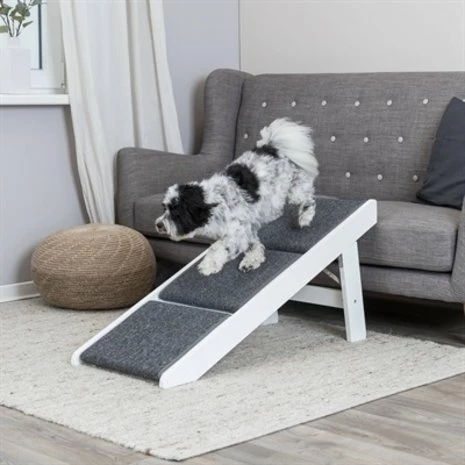 De Trixie Loopplank Met Uitklapbare Trede MDF Wit van 44 x 106 x 46 cm is een praktische loopplank en trap in één voor honden en katten, bekleed met tapijt voor meer grip. Deze loopplank van Trixie is pas echt multifunctioneel! Door de uitklapbare treden kun je deze plank namelijk gebruiken als loopplank én als trap. De loopplank is gemaakt van wit gelakt MDF en de treden zijn bekleed met tapijt, wat uitglijden helpt voorkomen. De loopplank is inklapbaar en zo ruimtebesparend op te bergen wanneer hij niet gebruikt wordt.