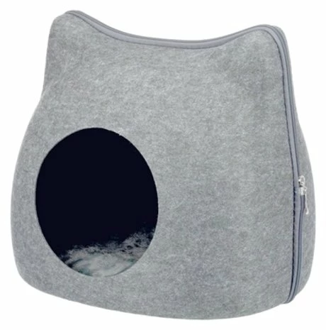 De Trixie Relax Iglo Cat in grijs vilt is een originele, leuke kattenmandje in de vorm van een kattenkop voor jouw kat van 38x35x37 centimeter.