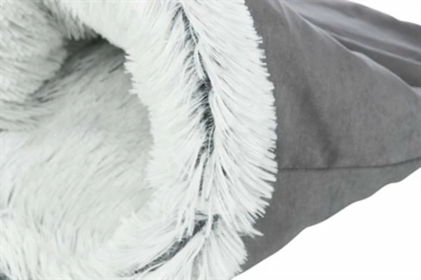 De Trixie Relax Slaapzak Harvey Grijs / Wit 60 x 50 cm is een slaapzak voor de kat of kleine kant, een mand om heerlijk in weg te kruipen bekleed met langhaar pluche en vormvast. Jouw hond of kat kan zich pas echt lekker verstoppen in deze heerlijke slaapzak van Trixie. De slaapzak Harvey is vormvast door de metalen ring en geeft jouw dier de mogelijkheid heerlijk in de zak weg te kruipen. Door de polyestervlies vulling en de bekleding van langhaar pluche en velourslook is de slaapzak extra comfortabel. De moderne kleurstelling zorgt ervoor dat deze slaapzak in elk interieur past!